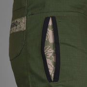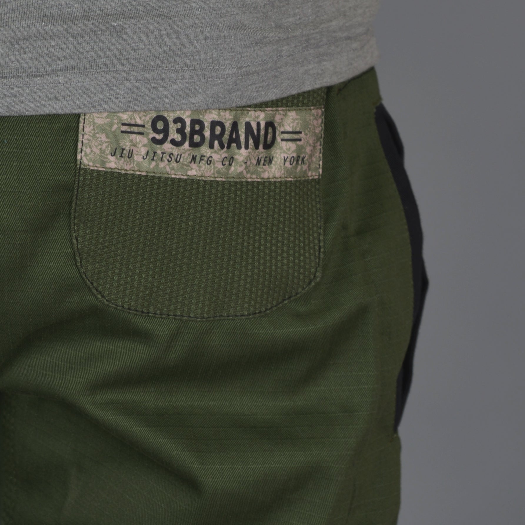 The rear pocket is Gi material, and deeper/wider than the previous edition. This new version maintains the classic pant loop + drawstring look of Gi pants. Tapered cuffs. Main material is the "Twin Twill" which we use on our SS1, SS2, etc Jiu Jitsu Gis. This is a soft twill base with ripstop pattern integration.