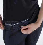 Our new women's high-waisted design utilizes 2 layers of full-stretch fabric at an angled cut to ensure a smooth and comfortable fit. Approximately 1" of elastic integrated at the top of the waistband ensures that there won't be any loose material along your waistline (no elastic at the bottom portion of the waist ensures that your hips will be free to move and uninhibited by a stronger elastic). Sublimated DO MORE JIU JITSU graphics along internal layer of waistband.