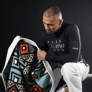 Lightweight 450 GSM Pearl Weave jacket is fully lined with this light and stretchy mesh lining, stitched down in the crucial areas (artwork is sublimated like a rashguard, but lighter). 10oz ripstop cotton pants.