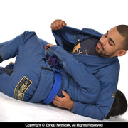 Utilizing a strong 12oz canvas cotton, with ripstop-reinforced sleeves to prevent your opponents from grabbing strong grips on the lighter weight fabric. To maintain a balance between the 12oz top and 12oz bottom, the full-length knee reinforcements are done with a lightweight and breathable mesh material.