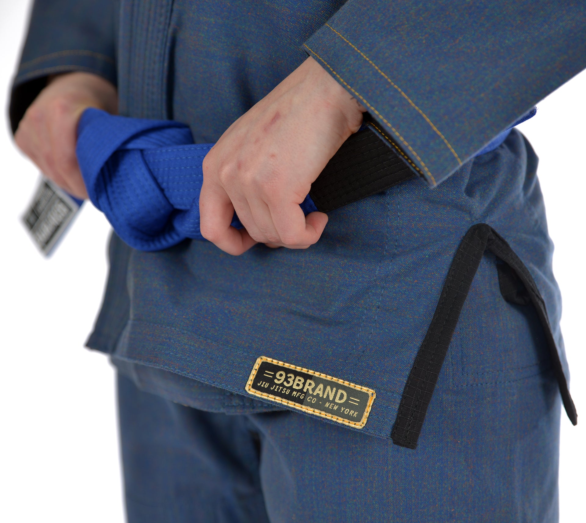 Blue has never looked so good! The small batch canvas "Gold Label" Gi uses a unique shade of melange style blue (a speckled dark blue) that is in a class of its own. Paired up with black, gold, and grey trim, the Gold Label is a great pick for summer or travel due to its lightweight.