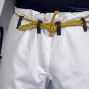 Our popular and reliable "Hooks" series has gotten a little face-lift and some upgrades. The same minimalist styling (no huge patches, no big logos) now includes new accents colors (dark grey and gold), as well as new fabrics. The older Hooks' 425 GSM High Tech Weave has been replaced with the 425 GSM Advanced Pearl, which is more tightly woven and much more resistant to shrinkage. Innovative hem patching along the front left corner of the Gi adds a splash of color without taking up unnecessary space if this is your competition Gi (leaving plenty of room for team and sponsor logos).