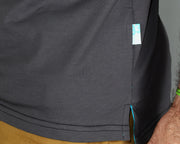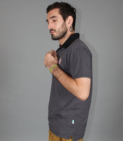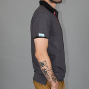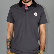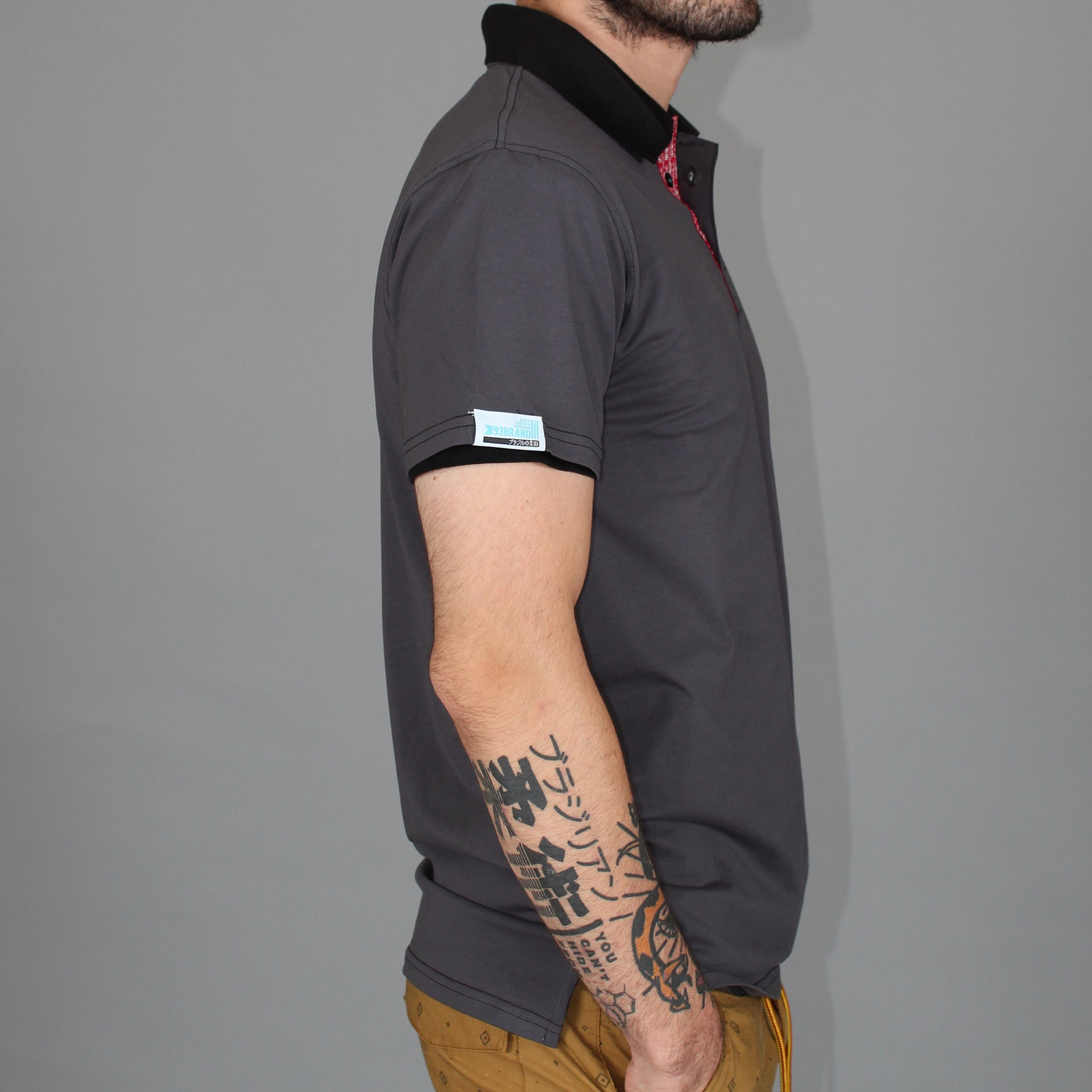 Our 2nd polo is here! The dark grey colorway uses a lower sheen fabric (no shine or gloss to the surface). Featuring 2 small woven labels and one breast embroidery along with a pattern-lined buttons. Built from a lightweight cotton/spandex blend (95% cotton, just 5% spandex for a slight stretch). Standard fit, but with a longer torso length. That way if you want a fitted polo you can size down without worrying about the shirt being too short.