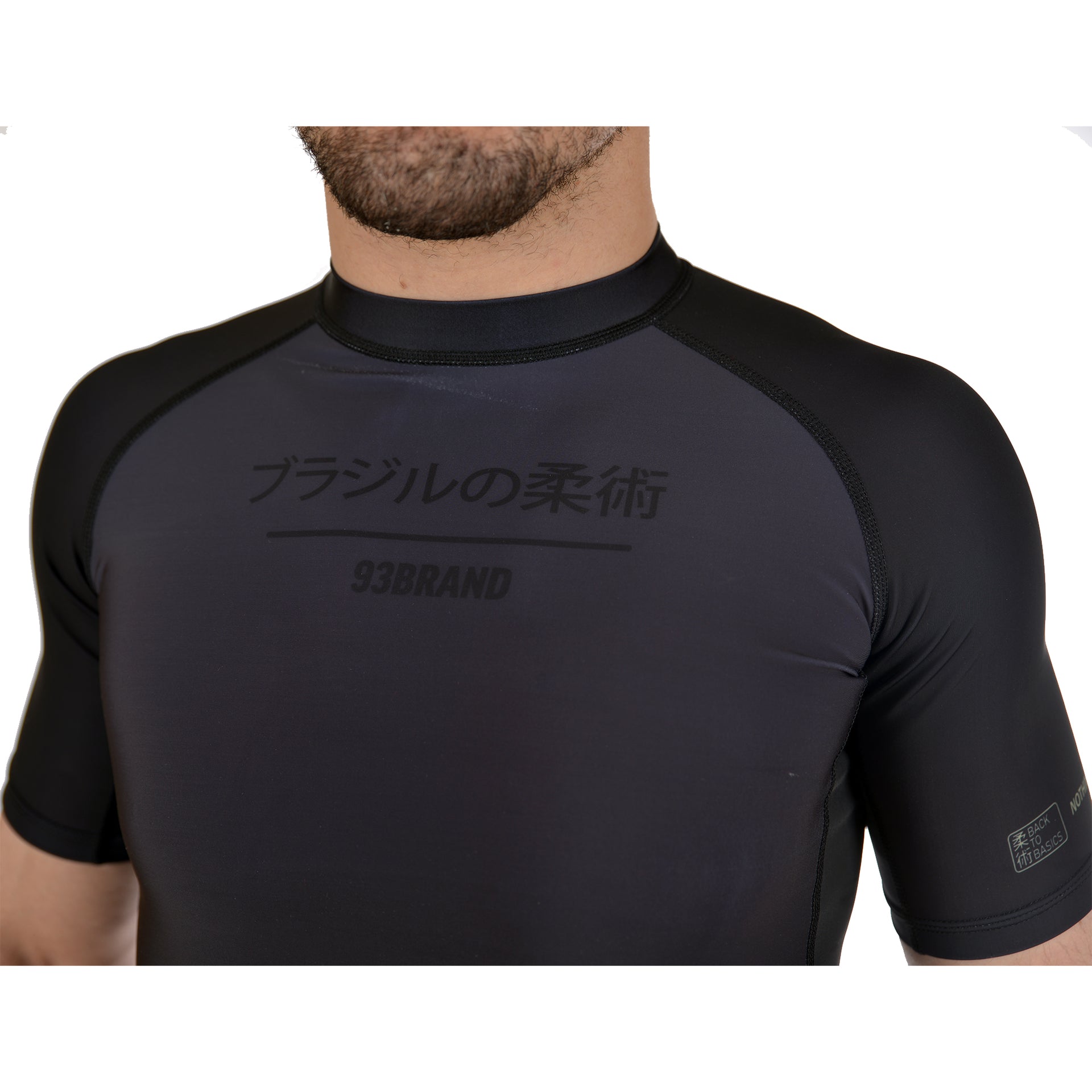 - Black-on-black Japanese chest logo reads "Brazilian Jiu Jitsu"
