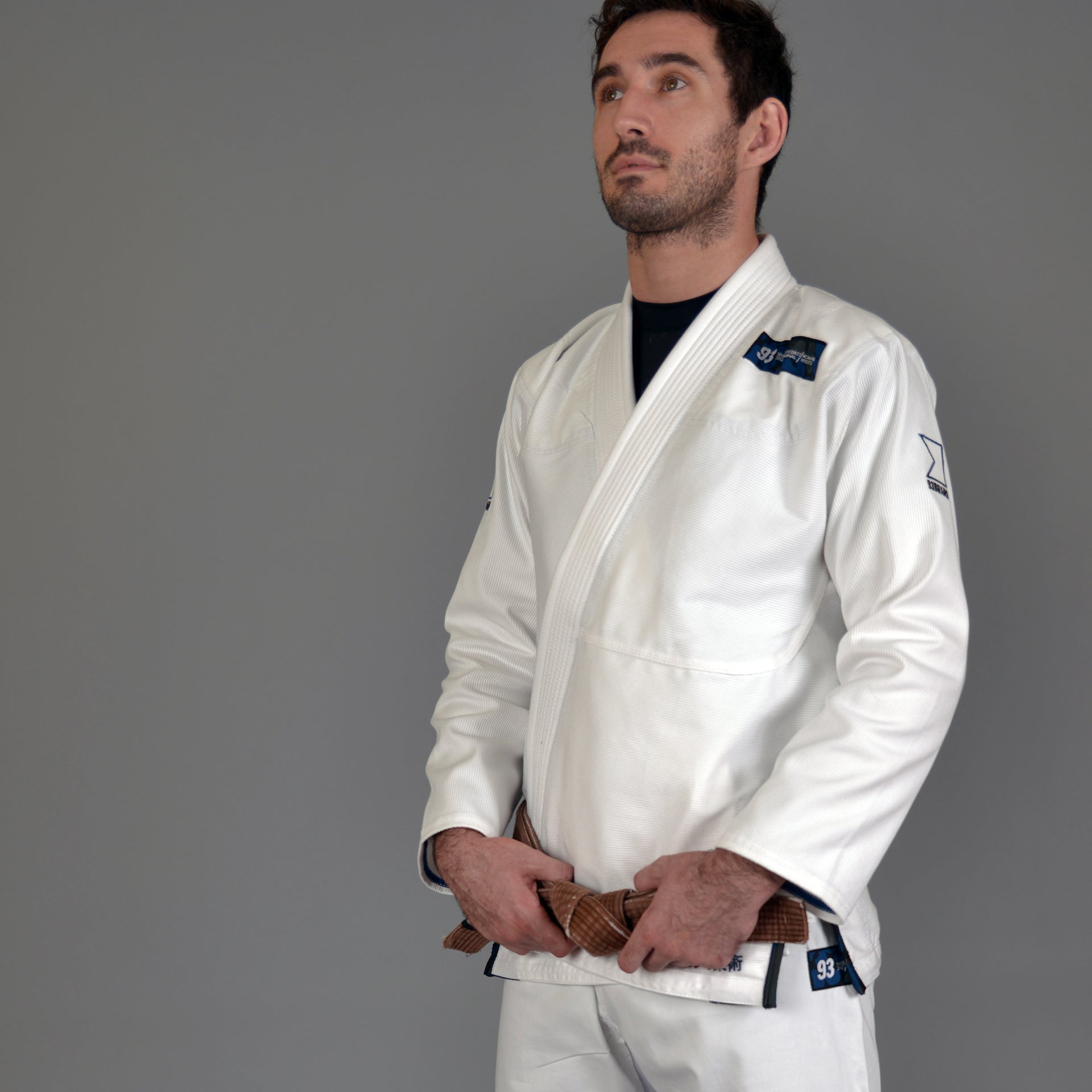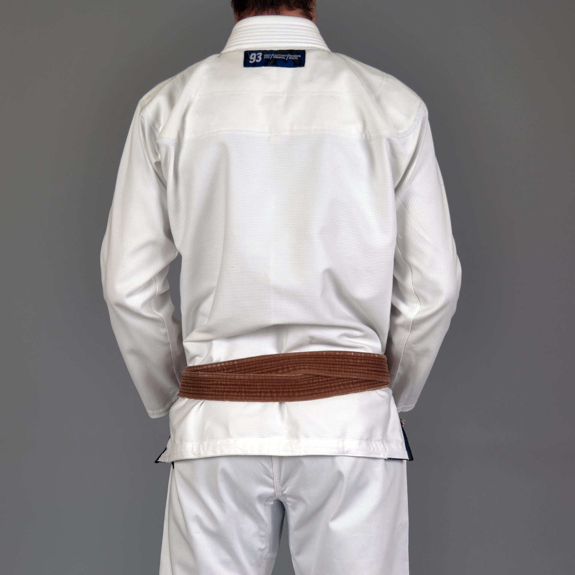 Brand new lightweight Jiu Jitsu Gi! Built from our 350 GSM MicroPearl Weave, which is resilient and thoroughly preshrunk. Paired up with light 8oz twill cotton pants to make your weight cut as easy as possible. Reinforced knees extend to the bottom hem of the pants. Outfitted with a thicker and wider collar than your typical BJJ Gi (filled with EVA foam and wrapped with lightweight twill). Wider drawstring loops for a secure fit, fastened with an easy-to-use round stretch string.