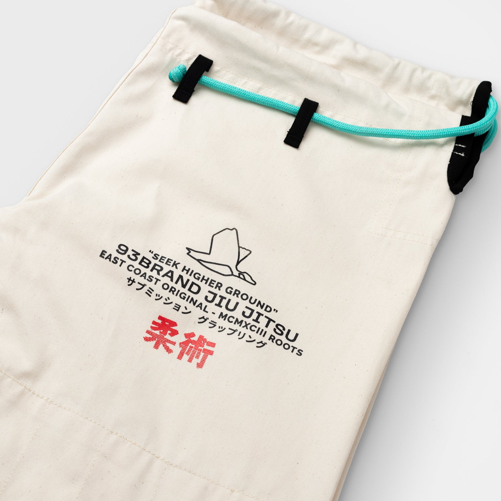 Interior seams are taped for durability and comfort against the skin. For the Hooks series we use 4 drawstring loops and a round stretch drawstring, making it easier to tie and untie your gi pants.