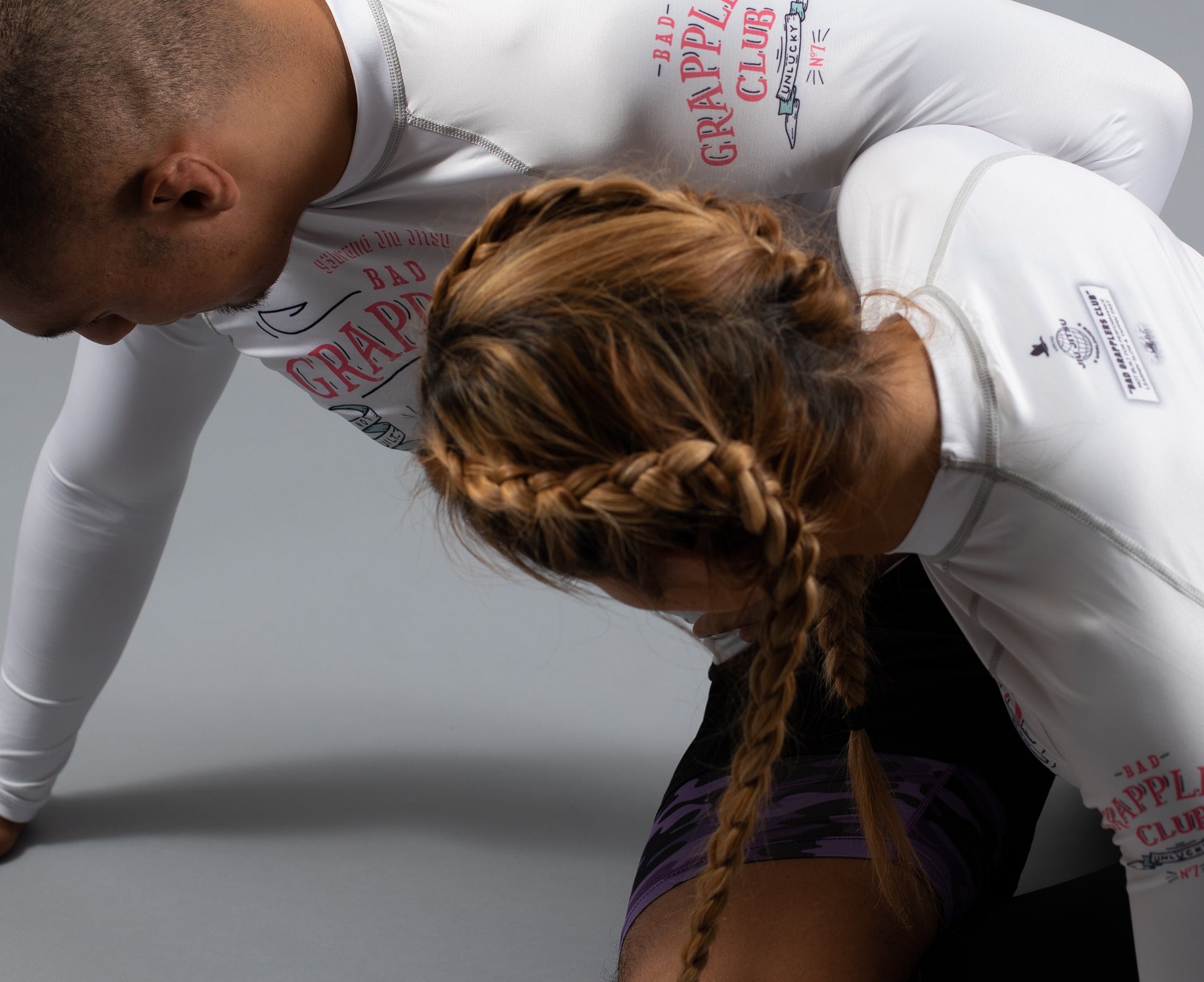 Rep the team and embrace your flaws with our Bad Grapplers Club rashie.