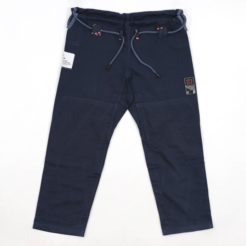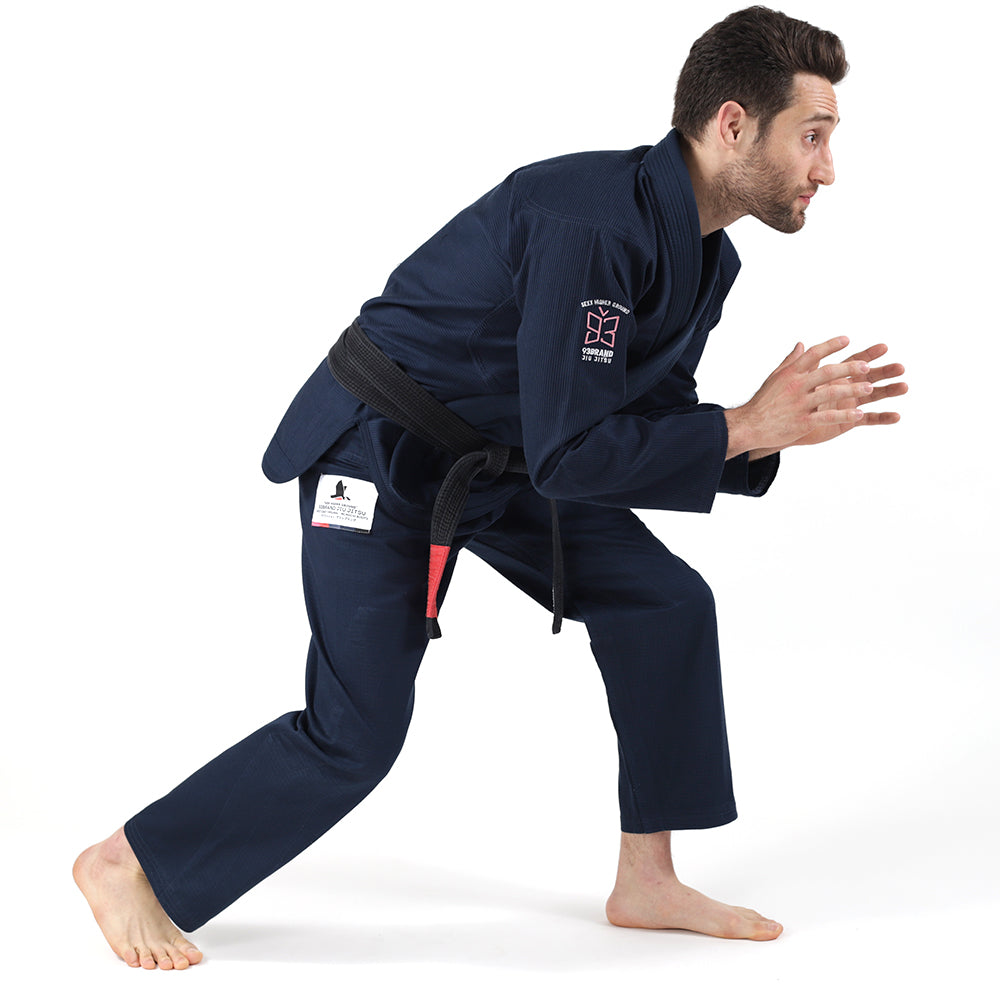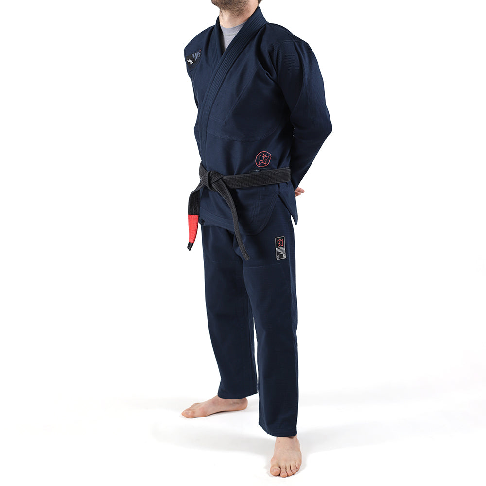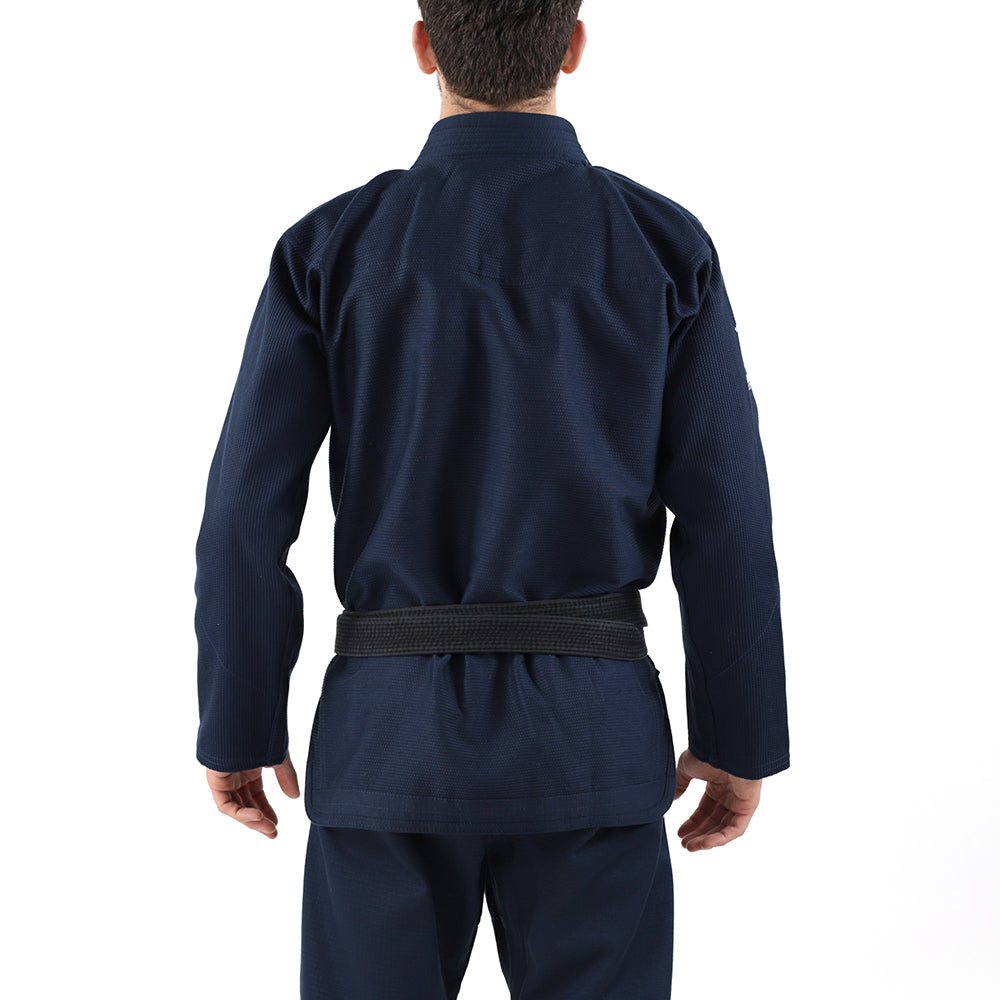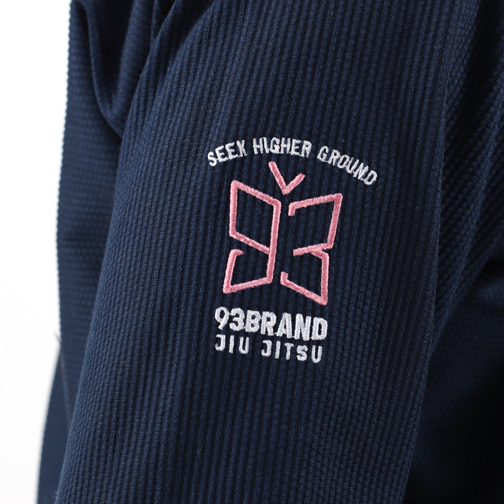 New navy blue Gi based on 93brand's "C-SPEC" body style with several modifications to the typical BJJ Gi... aimed at improving the traditional kimono design in areas where Jiu Jitsu has evolved but the old school uniform has not. The main materials are 425 GSM Advanced Pearl Weave for the top, and a hybrid Twin Twill cotton weave bottoms.