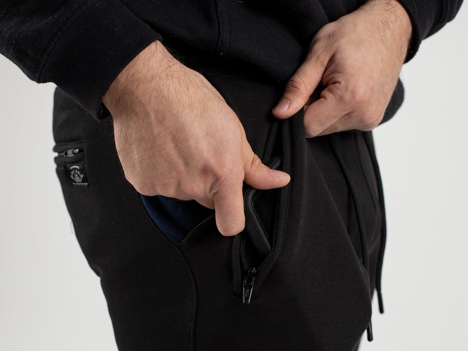 - Four pockets total: Standard side pockets + Rear zippered pocket + Zippered pocket layered over right-hand pocket (to prevent phone or cash from slipping out while seated)
