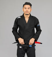 New IBJJF-approved installment from our SS series. With unique mounted patches and quality embroideries throughout. Side vents and pant loops use a unique multi-color pattern.