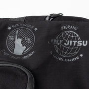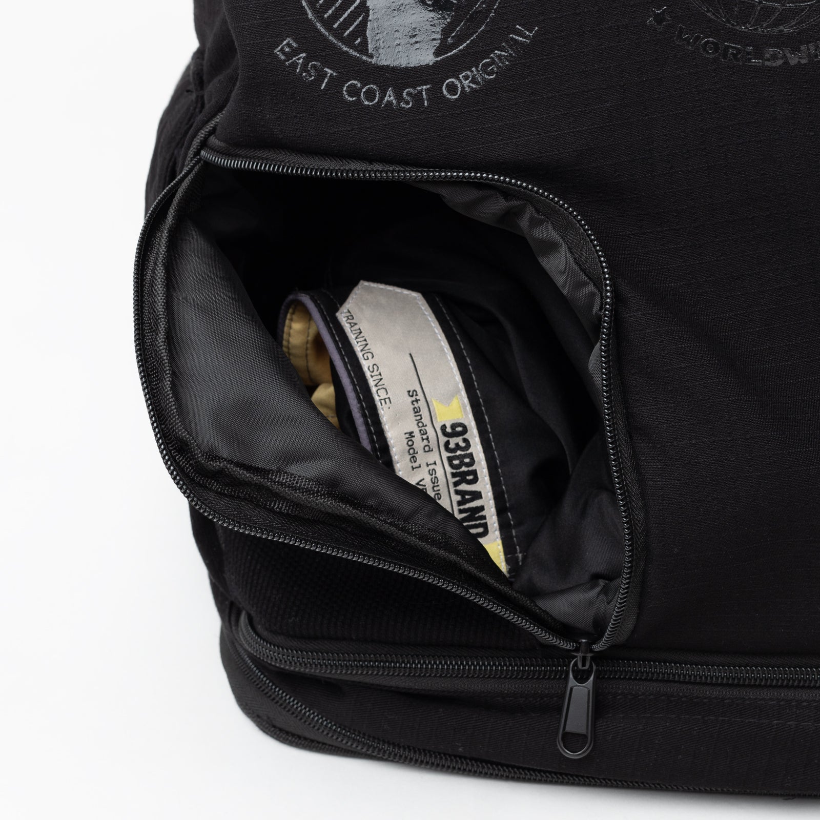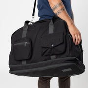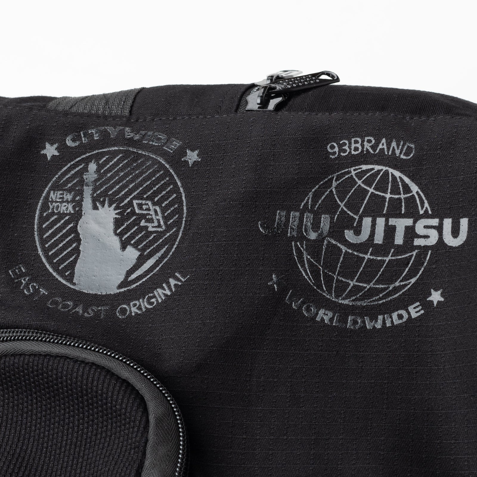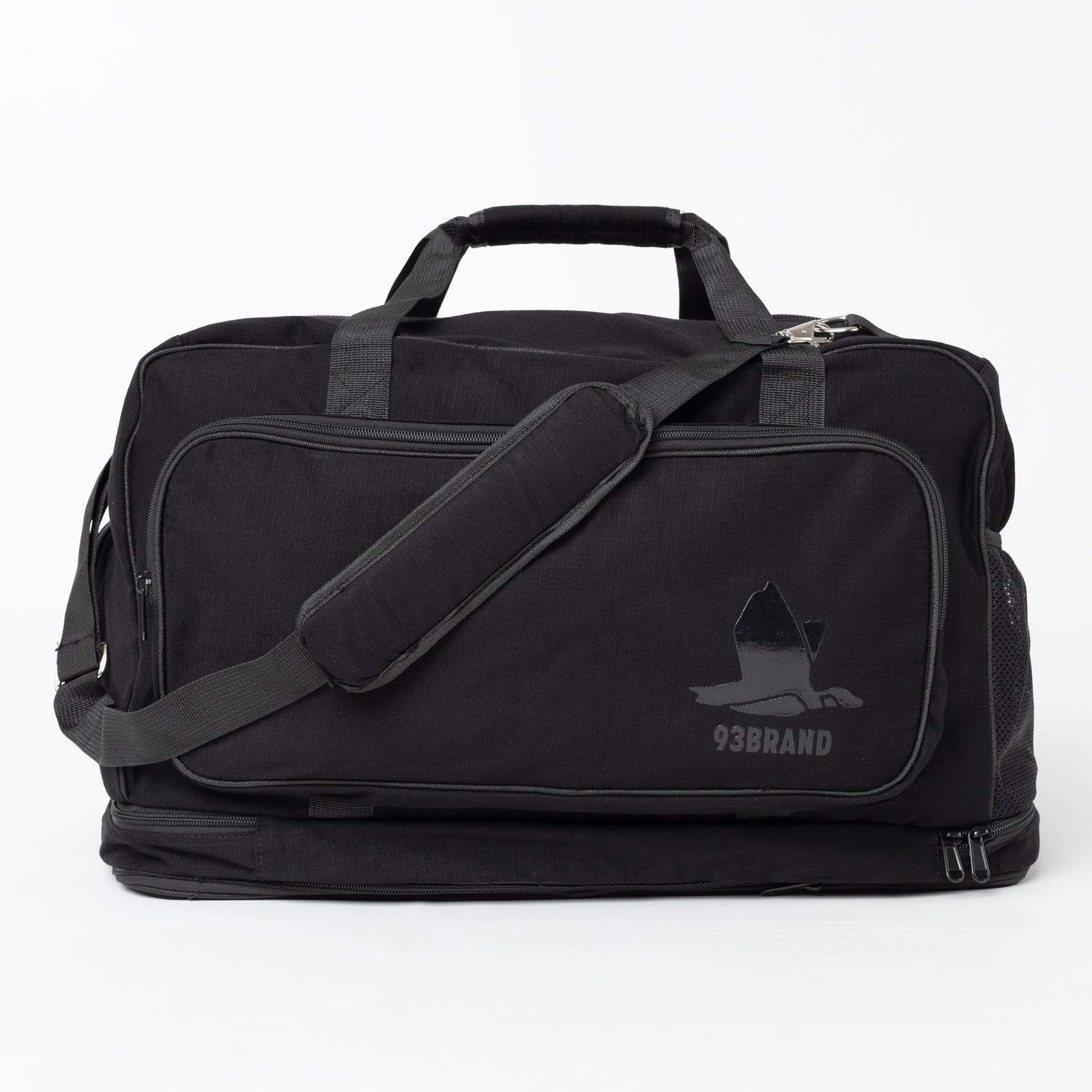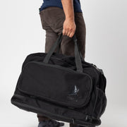 Our new blacked out duffle makes an ideal gym bag. The cotton construction allows for safe cleaning. We recommend securing all the straps and removing the shoulder strap prior to machine washing (and recommend washing it on its own). Cold wash, hang dry or tumble dry low. Keep it fresh just like your gis. Dimensions: 21" L x 15" W x 14" H"