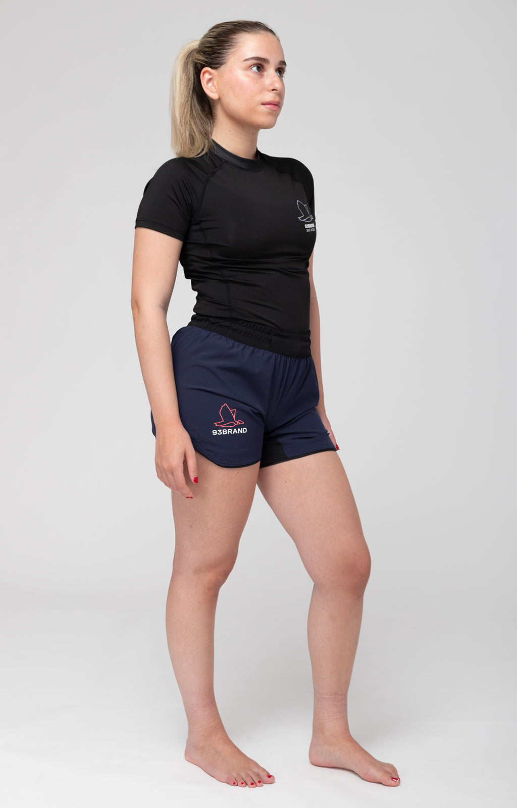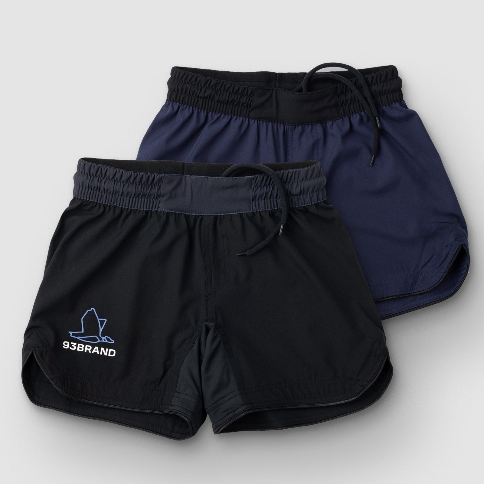 Our latest collection of Standard Issue shorts boasts an upgraded design. Notably, these shorts feature an elastic waistband with a round cushioned drawstring and no Velcro closure! Each order includes two colorways: French navy and black/midnight. They're constructed with a soft and lightweight poly/Spandex material that's ideal for grappling. Both pairs have minimal branding with a small print on the right leg.