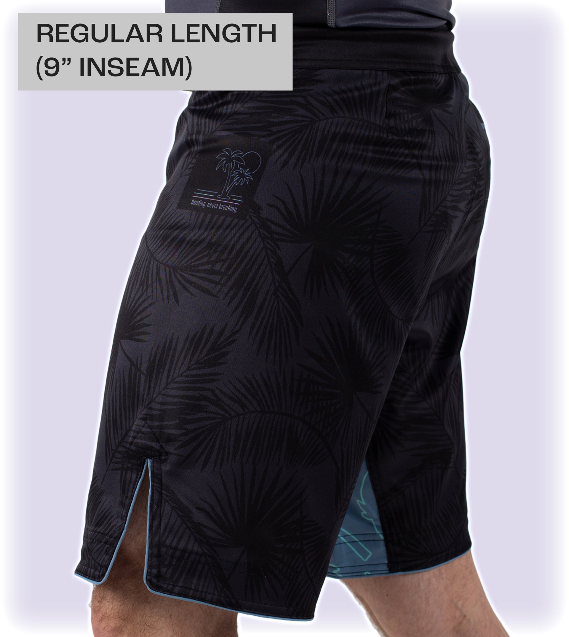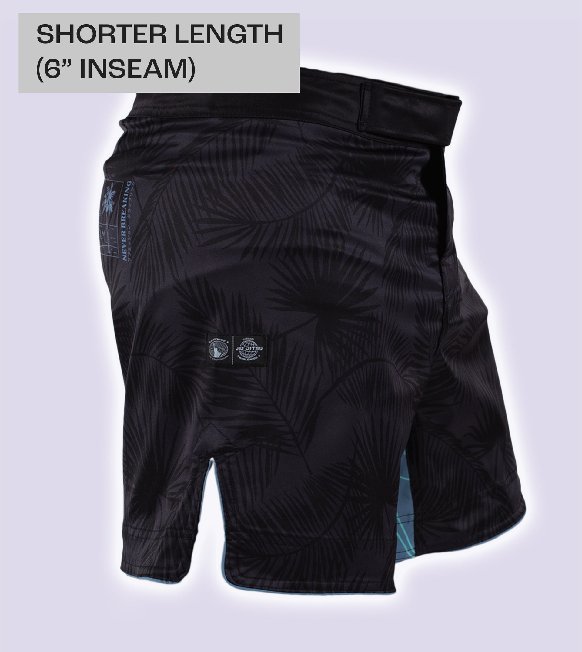 The Short Length, which has a shorter 6" inseam, is more like surf shorts and several inches shorter than classic Jiu Jitsu board shorts. The Regular Length has a 9" inseam, typical of classic Jiu Jitsu board shorts (see our separate listing for the Short Length and Women's Cut).