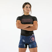 Fully sublimated artwork will never fade or peel. Rounded piping along the hem offers reinforcement for the hem seam as well as nice clean finish to the edge of the shorts. Wide but slim closure provides a secure fit without extraneous protrusions that would bother your stomach when hunched over in seated guard, for example. Fine-tune your fit with the internal drawstring, which is a cushioned round style that won't absorb excess moisture