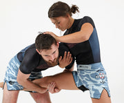 Fully sublimated artwork will never fade or peel. Rounded piping along the hem offers reinforcement for the hem seam as well as nice clean finish to the edge of the shorts. Wide but slim closure provides a secure fit without extraneous protrusions that would bother your stomach when hunched over in seated guard, for example. Fine-tune your fit with the internal drawstring, which is a cushioned round style that won't absorb excess moisture